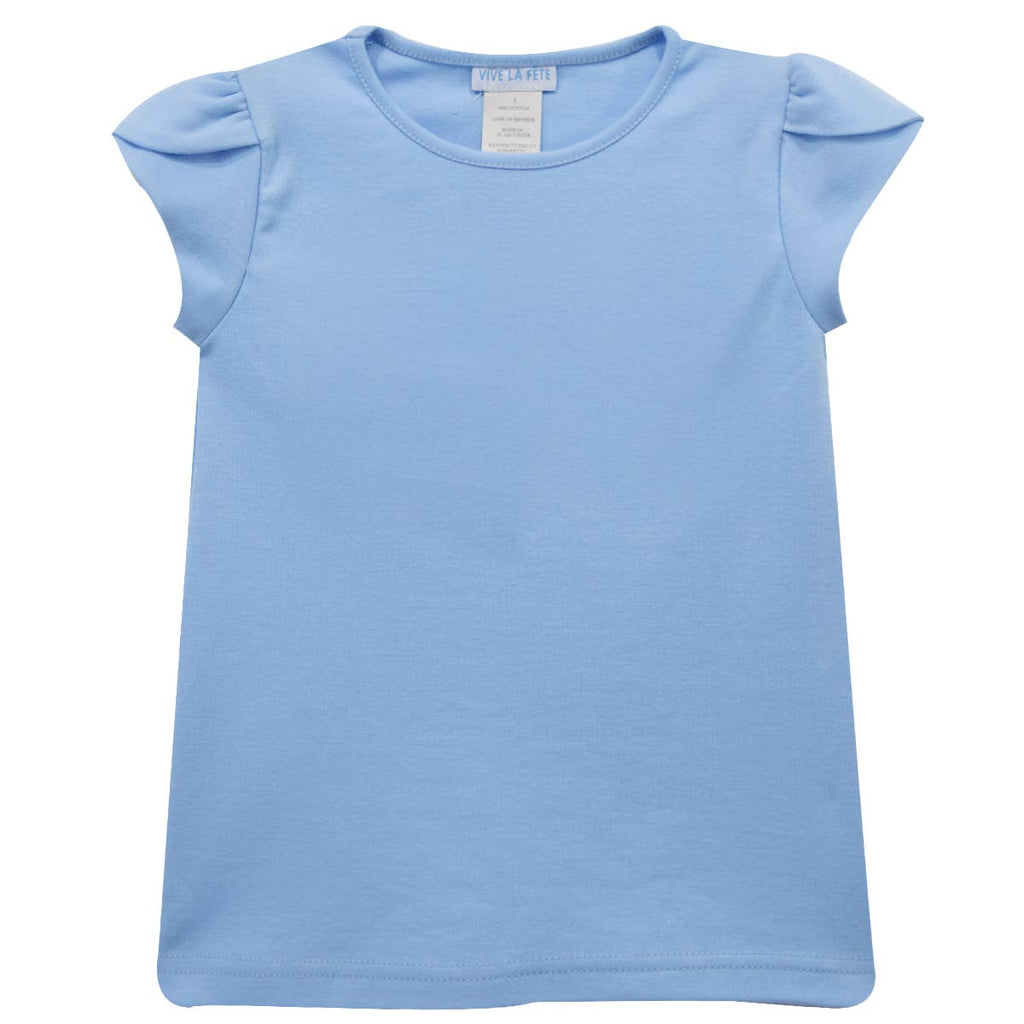 Knit Top with Tulip Short Sleeve - Light Blue