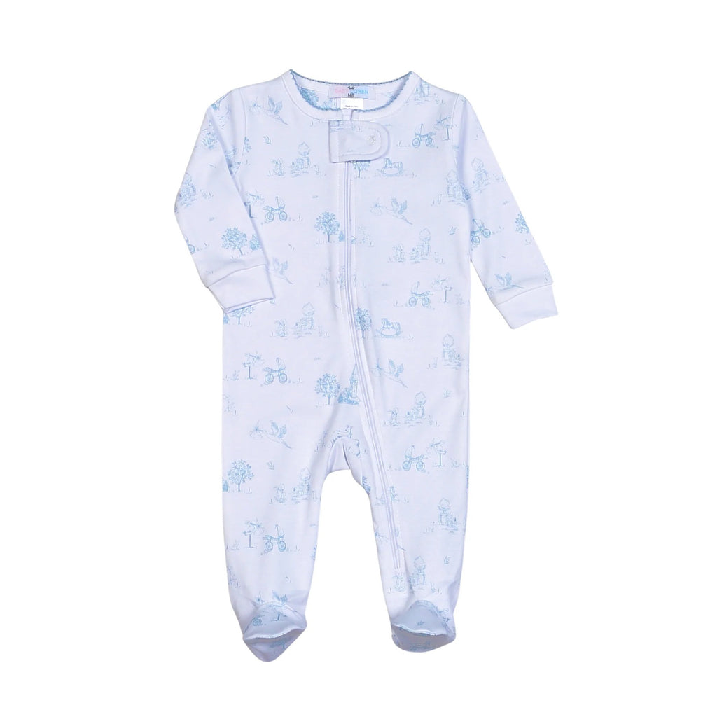 Baby Toile Zipper Footie - Blue