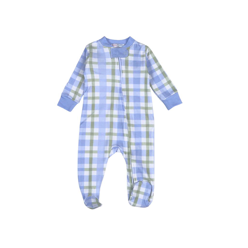 Jon Zipper Footie - Blue Plaid