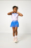 A girls tennis skirt that is made for fashion and twirling! Inspired by a famous pop icons viral skirt, the waistband is a thick elastic, allowing it to stretch and move while looking snug and tailored. Made with our anti-odor shorts underneath complete with a pocket for a tennis ball and/or phone.