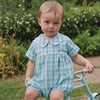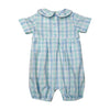 Blue Plaid Boy's Bubble Romper