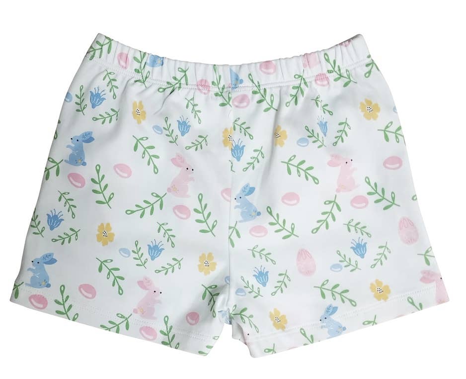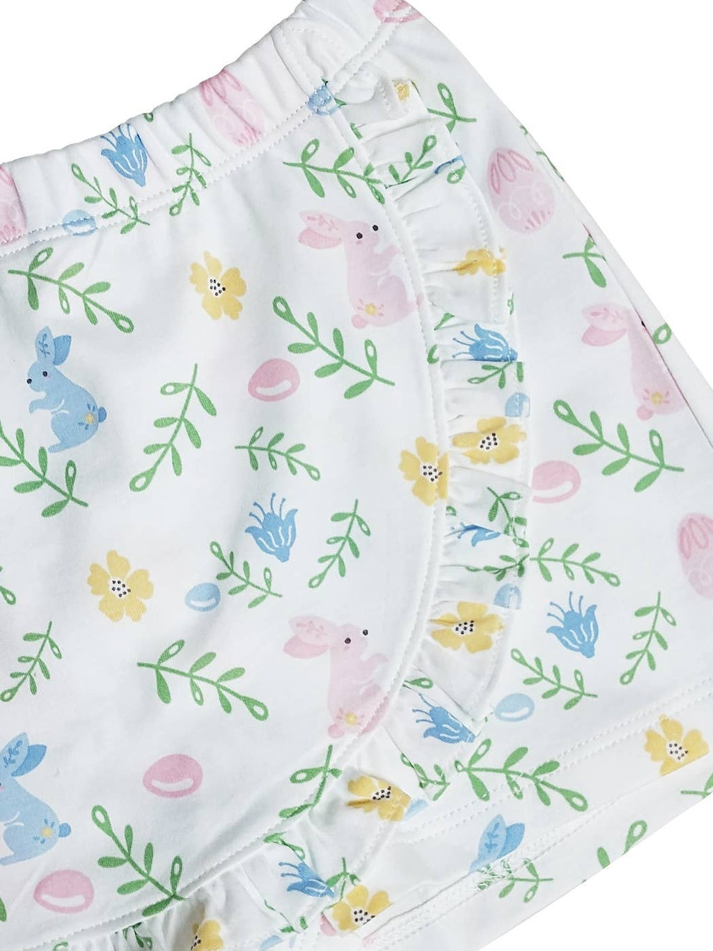 Easter floral print girl's skort. 100% pima cotton. Machine washable. Made in Peru