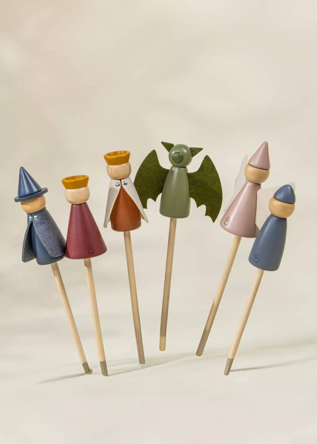 Step into a world of enchantment with our set of six Wooden Puppets! This delightful collection includes a brave knight, a regal king, a majestic queen, a mythical dragon, a whimsical fairy, and a wise wizard. Each puppet is beautifully crafted from wood to imaginative play and storytelling adventures. Whether defending kingdoms, casting spells, or granting wishes, these puppets bring fantasy to life and encourage creativity in children of all ages. Perfect for puppet shows, storytelling sessions, or simply enhancing playtime, this set is a magical addition to any child's toy collection.